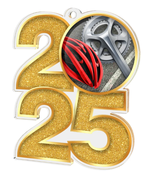Akrylátová medaile o tloušťce 0,3 cm. Šířka medaile je 6 cm.