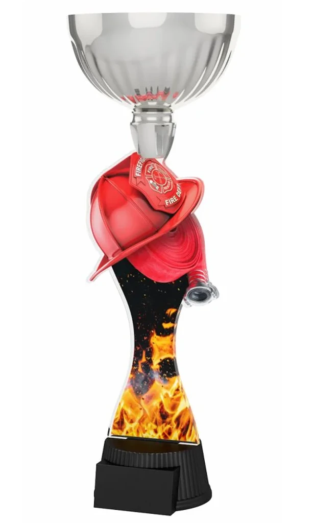 Tato akrylátová trofej je ve třech velikostech, s černým podstavcem a držákem v motivu ohně. Lze přidat štítek s vlastním textem.