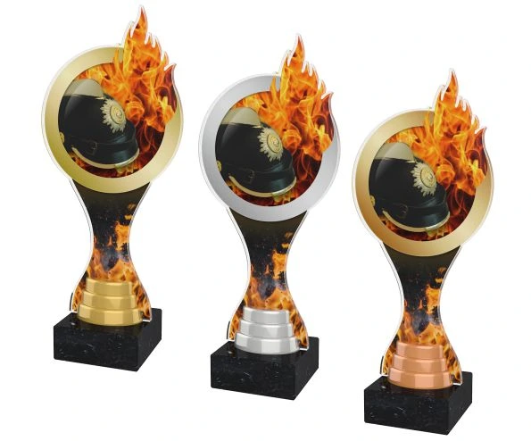 Barevná akrylátová trofej s hasičskou helmou a ohněm ACBTM23