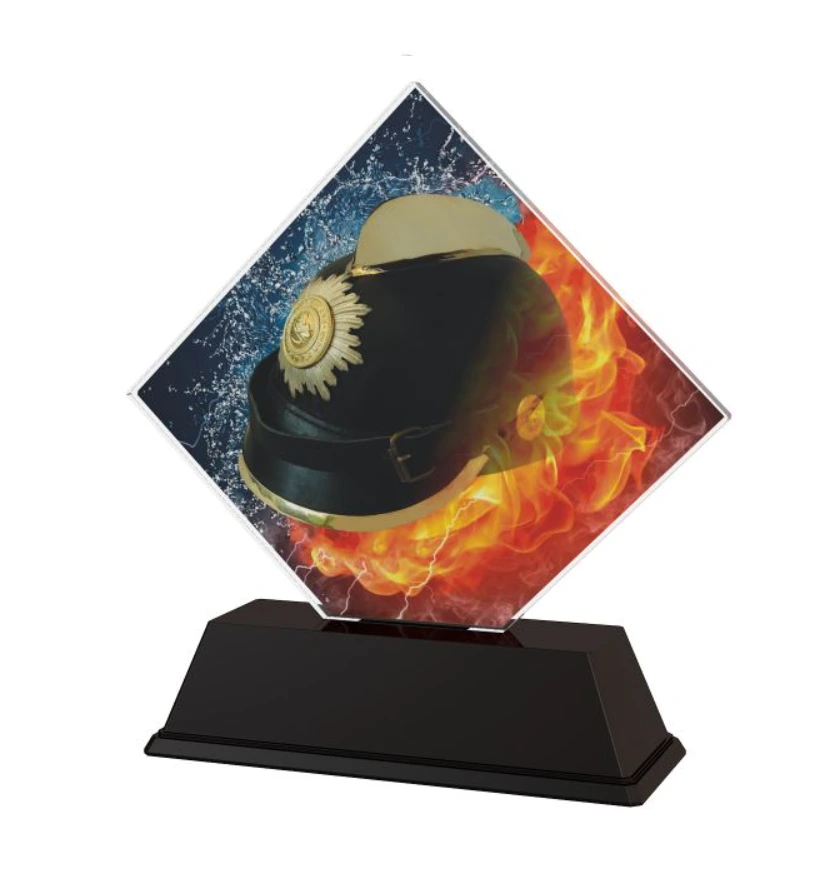 Barevná akrylátová trofej s hasičskou helmou ACSQM2