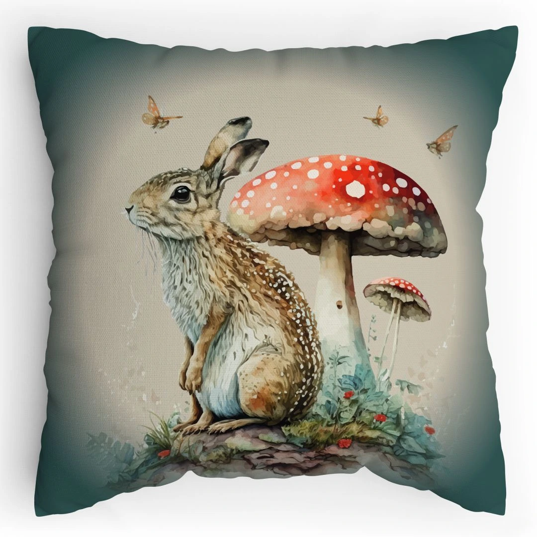 Dětský Polštářek s potiskem Zajíc na houbách Vodovky Splitcolored