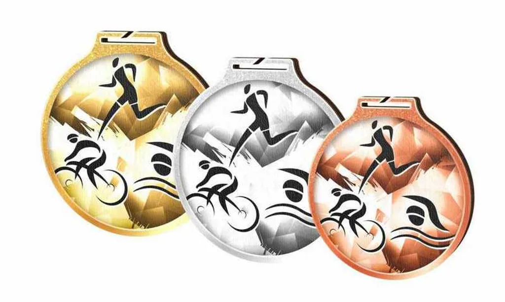 Dřevěná medaile s motivem triatlonu   Zlato - 9 cm   Stříbro - 8 cm    Bronz - 7 cm