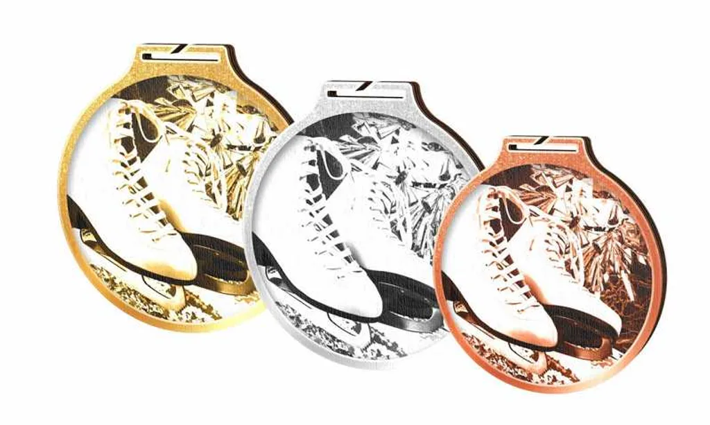 Dřevěná medaile s motivem krasobruslení    Zlato - 9 cm   Stříbro - 8 cm    Bronz - 7 cm