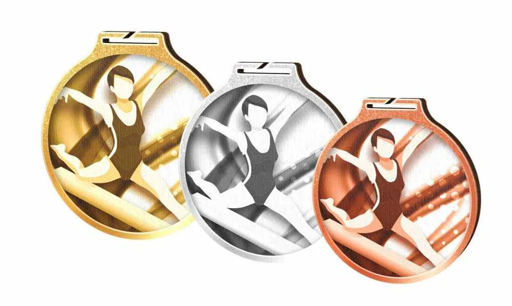 Dřevěná medaile s motivem gymnastika   Zlato - 9 cm   Stříbro - 8 cm    Bronz - 7 cm