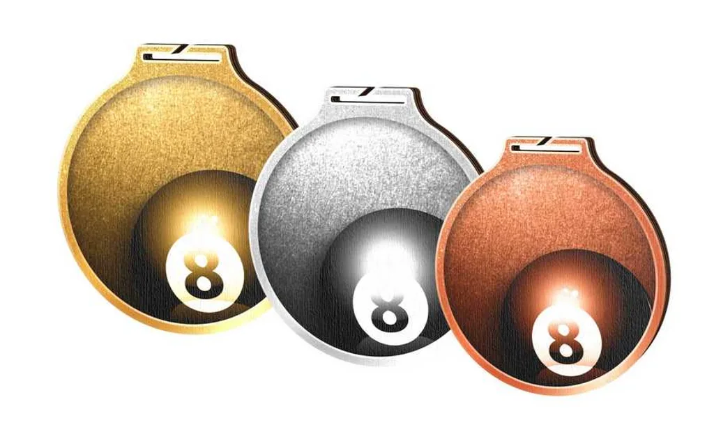 Dřevěná medaile s motivem biliardu   Zlato - 9 cm   Stříbro - 8 cm    Bronz - 7 cm