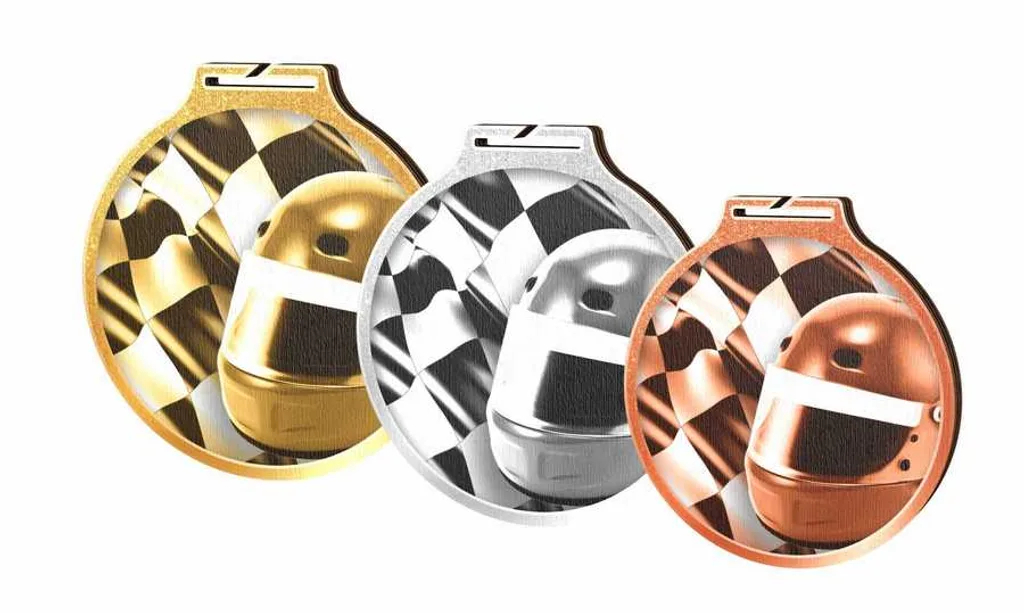 Dřevěná medaile s motivem motosportu    Zlato - 9 cm   Stříbro - 8 cm    Bronz - 7 cm