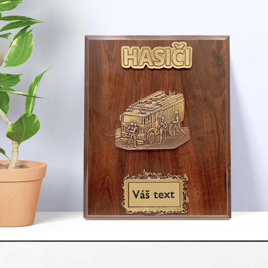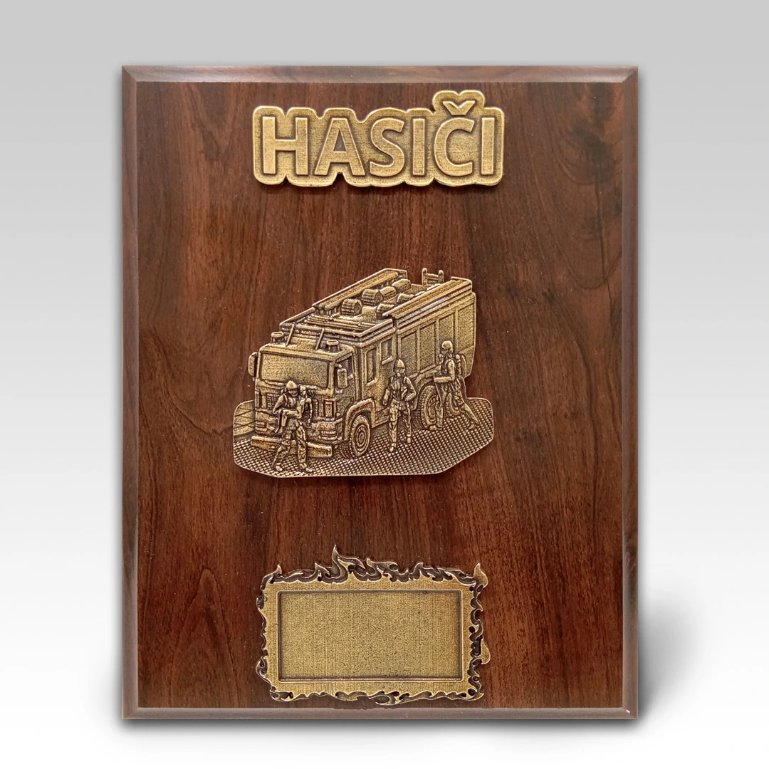 Hezká a neokoukaná - motivy pro plaketu jsme vytvářeli a skládali v naší výrobně v Třešovicích u Strakonic. Můžete se spolehnout, že tuto plaketu žádný hasič nemá doma ani na poličce v práci.