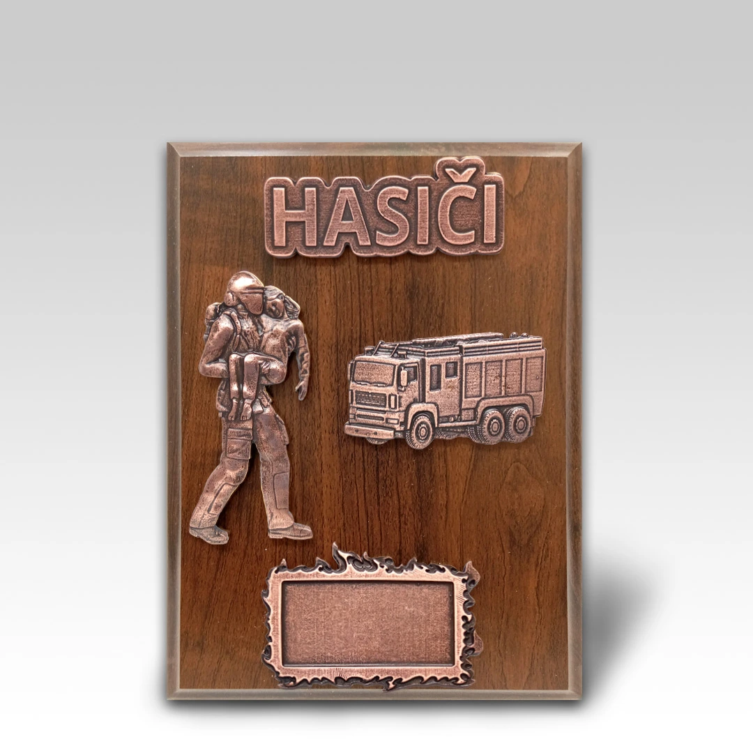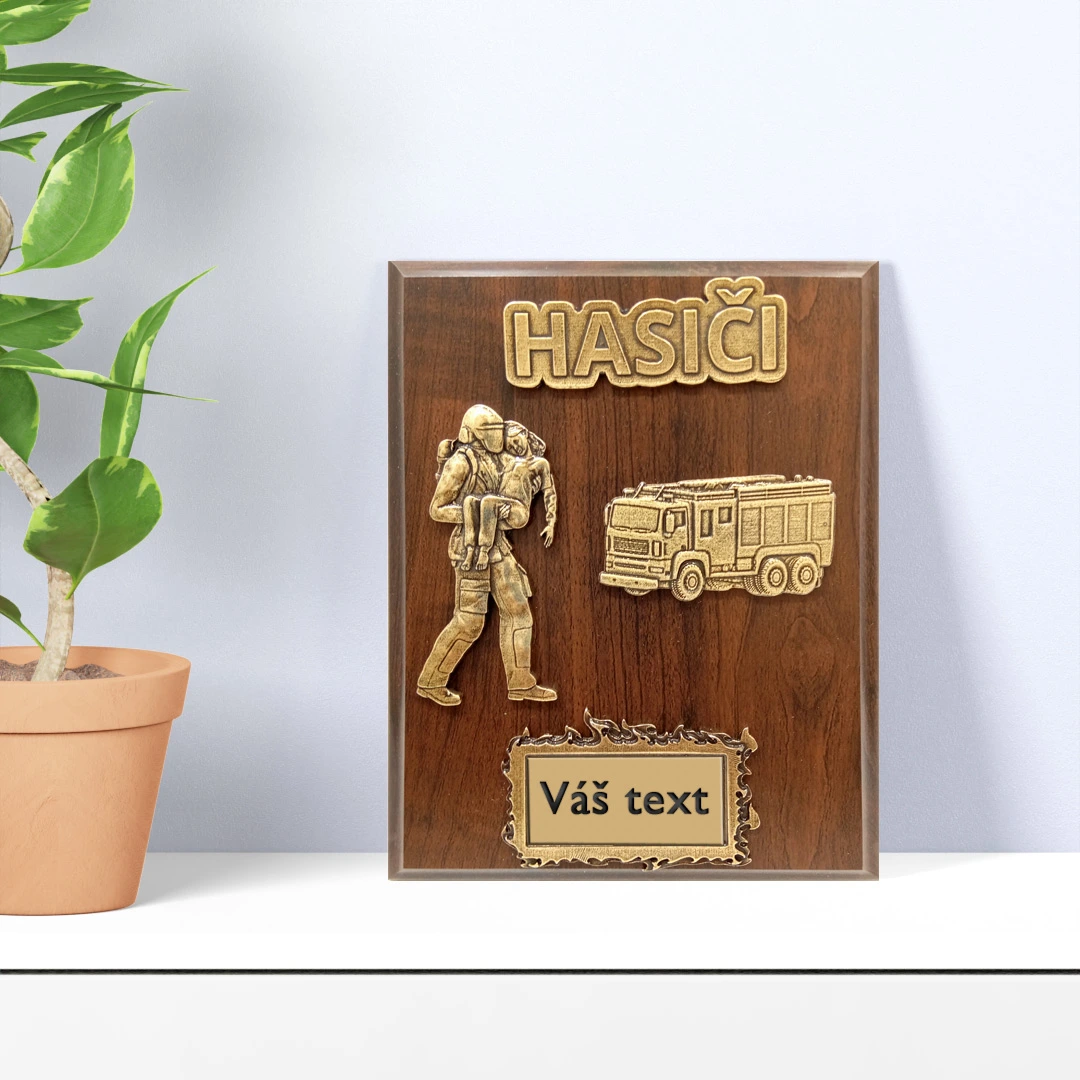 Dárek který udělá radost profesionálnímu i dobrovolnému hasiči. To je dřevěná plaketa s motivem hasiče zachránce a hasičského vozu o velikosti 20x15cm z naší výroby. Plaketa je absolutní novinka na našem trhu - za jejím vývojem stojí náš profesionální český tým specialistů na trofeje.