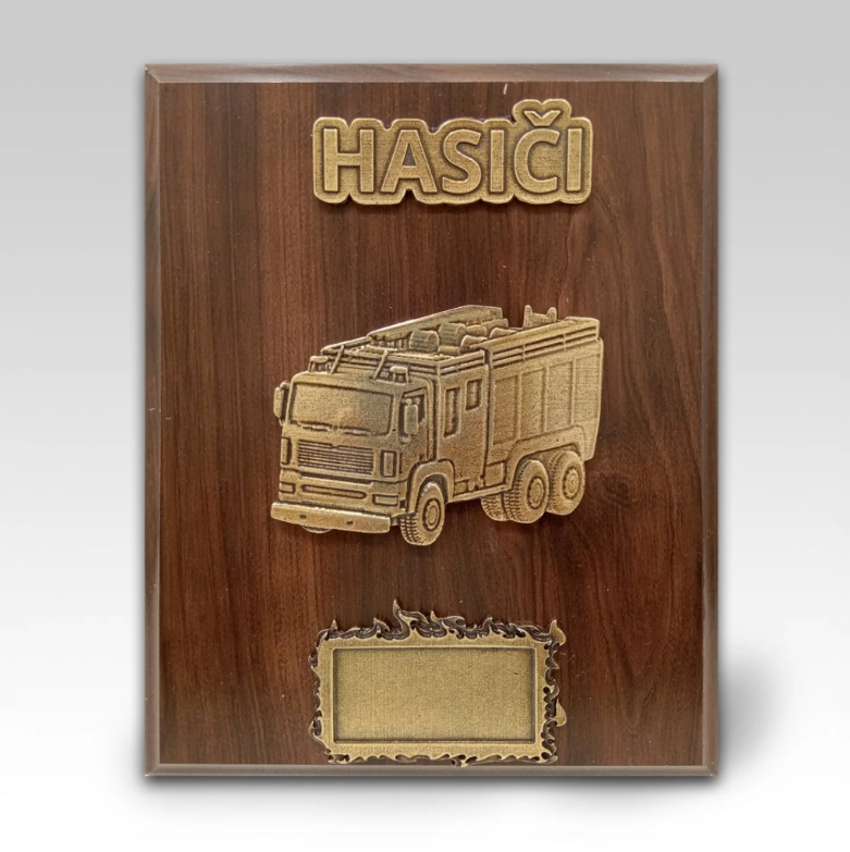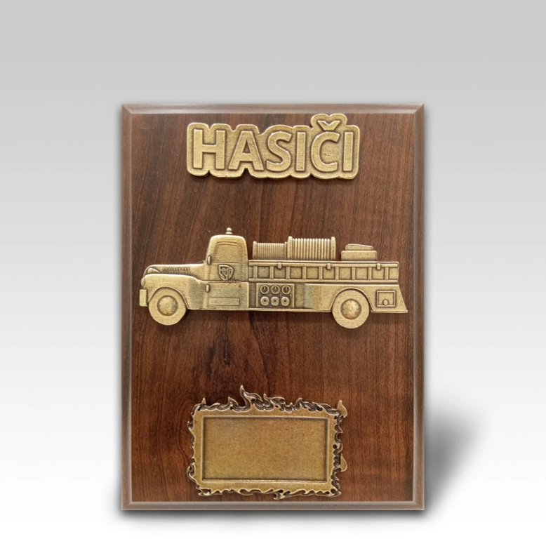 Dřevěná plaketa s hasičským vozem oldtimer. Dřevěná plaketa je z naší vlastní výroby. Cena plakety nezahrnuje štítek, který si můžete objednat samostatně dle vašich přání.Rozměry plakety jsou 20 x 15 cm. Tyto hodnoty jsou orientační a mohou se mírně lišit.
