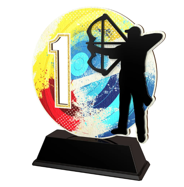 Dřevěná trofej s černým plastovým podstavcem. Trofej je vytvořena UV potiskem a siluetou z černého lesklého akrylu.Cena trofeje nezahrnuje štítek, který si můžete objednat samostatně dle vašich přání.Tloušťka trofeje je 0,4 cm.