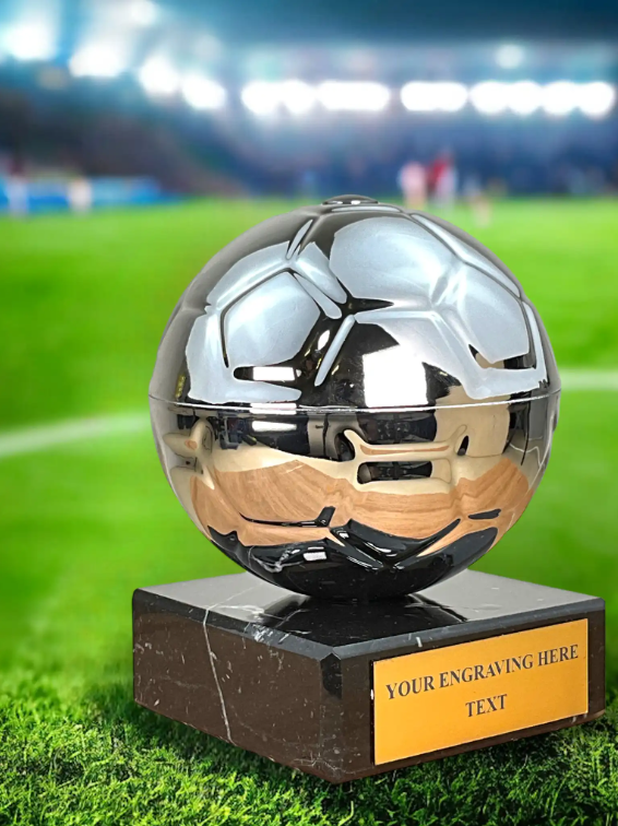 Fotbalová trofej o výšce 13 cm. Průměr trofeje je 10 cm. Rozměry jsou pouze orientační a můžou se mírně lišit.Cena trofeje nezahrnuje štítek, který si můžete objednat samostatně dle vašich přání.