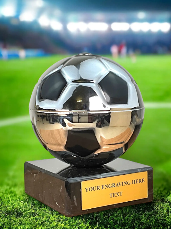 Fotbalová trofej o výšce 13 cm. Průměr trofeje je 10 cm. Rozměry jsou pouze orientační a můžou se mírně lišit.Cena trofeje nezahrnuje štítek, který si můžete objednat samostatně dle vašich přání.
