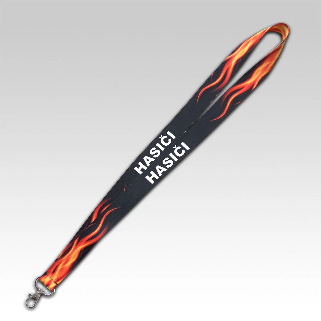 Potisk v motivu ohně - stuha má náš vlastní design pro potisk v barvách a tvaru ohně s nápisem Hasiči