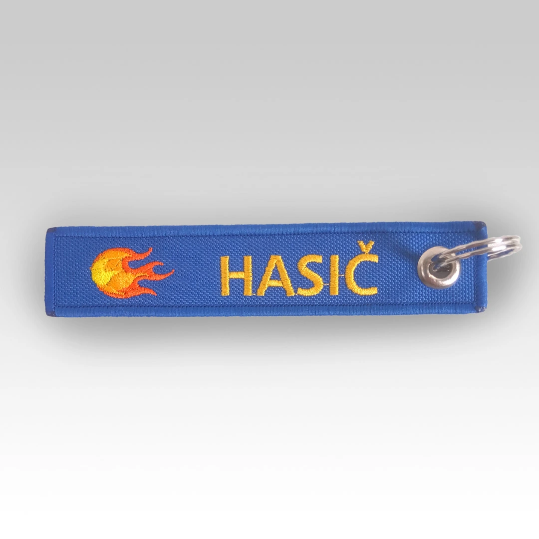 Vyšívaný oboustranný nápis - klíčenka má náš vlastní design s motivem Hasič se toho nebojí.