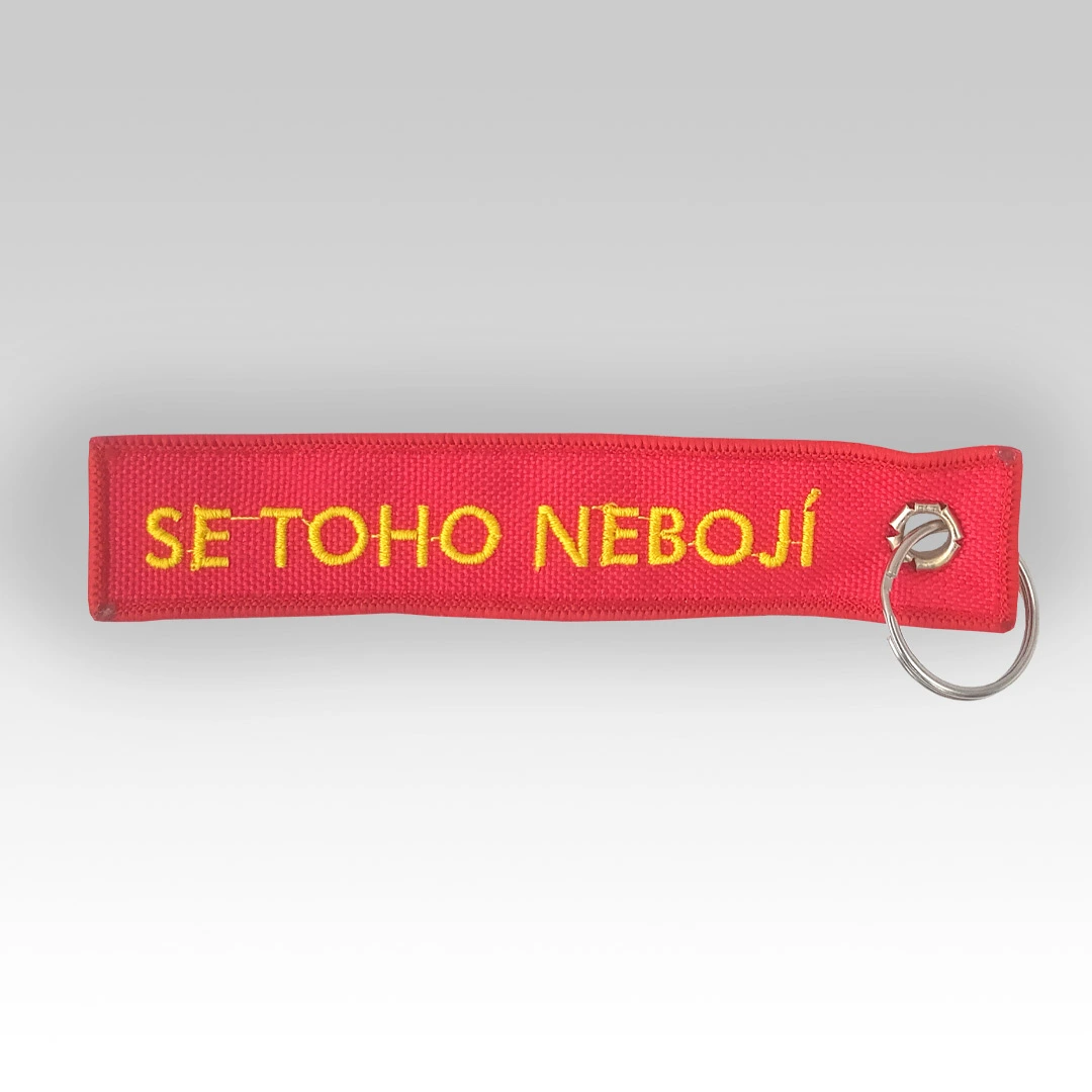 Vyšívaný oboustranný nápis - klíčenka má náš vlastní design s motivem Hasička se toho nebojí.