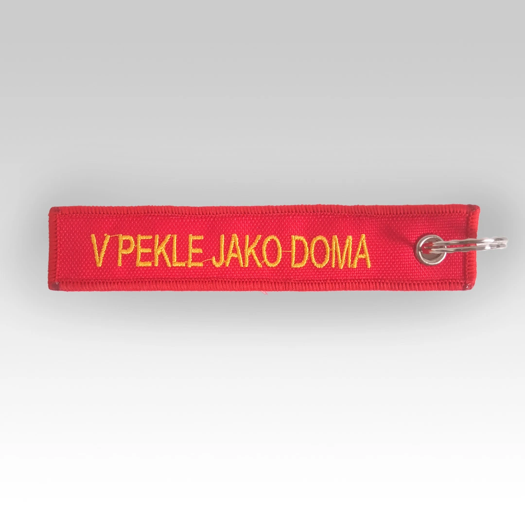 Vyšívaný oboustranný nápis - klíčenka má náš vlastní design s motivem Hasička v pekle jako doma.