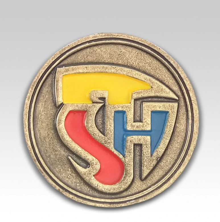 Hasičská medaile o průměru 45 mm. Motiv znaku SDH byl vybarven stálobarevnými barvami.