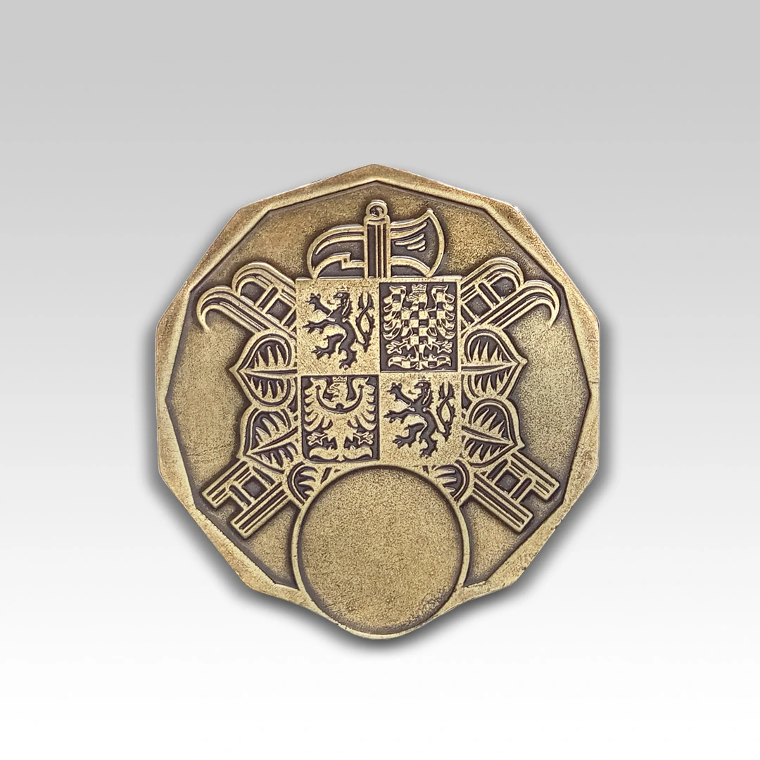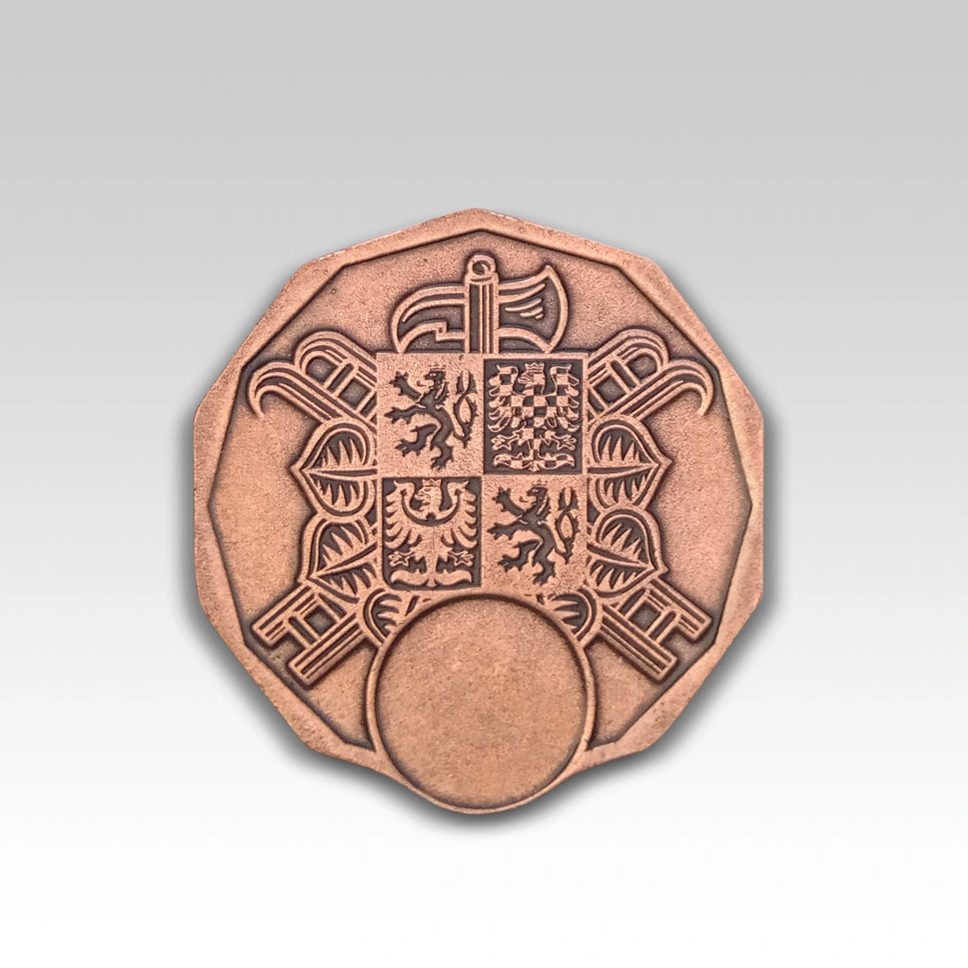 Medaile má celkový průměr 70 mm. Ve spodní části medaile je prostor pro štítek o velikosti 25mm.