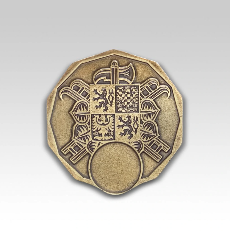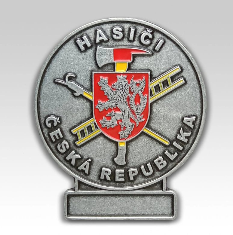 Hasičská medaile se znakem SH ČMS a prostorem pro štítek.