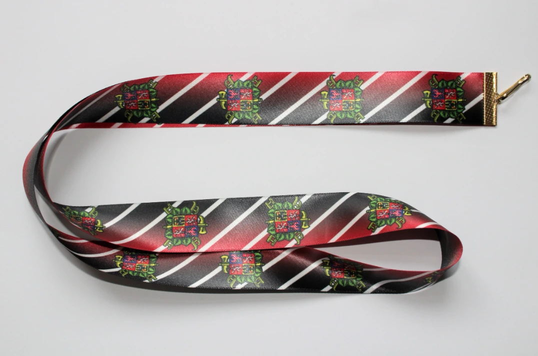 Potisk v motivu ohně - stuha má náš vlastní design pro potisk v červené barvě s hasičským znakem.
