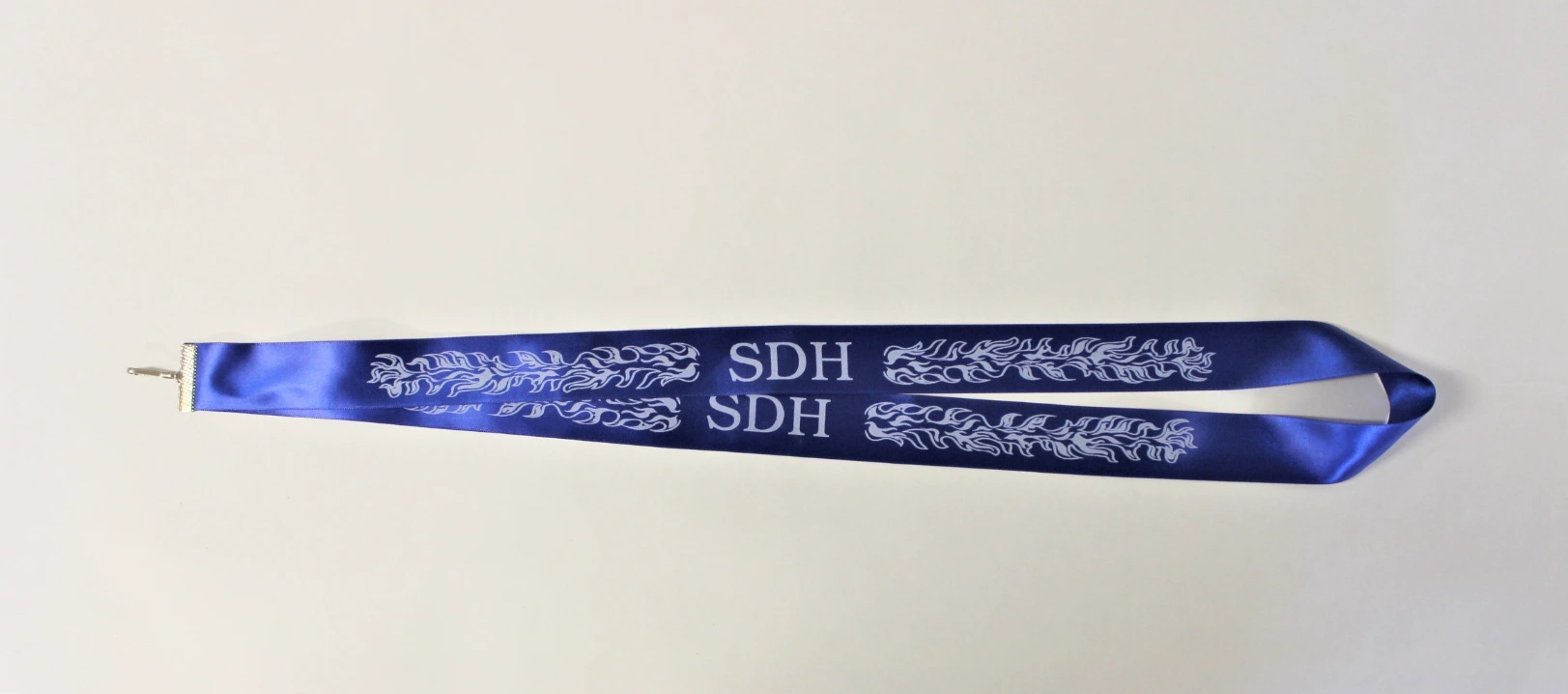Potisk v motivu ohně - stuha má náš vlastní design pro potisk v barvách a tvaru ohně s nápisem SDH