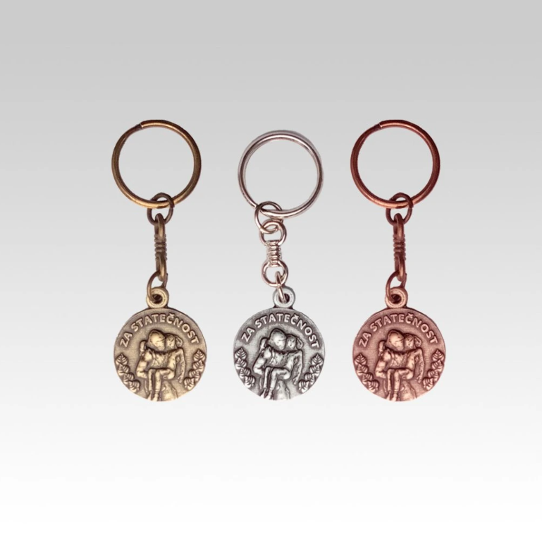 Klíčenka má celkovou výšku 3 cm včetně ouška pro spojovací kroužek a šířku 2,2 cm. Tyto rozměry jsou orientační a mohou se mírně lišit