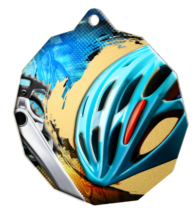 Medaile vyrobená z nerezové oceli, s UV potiskem a 2D efektem.