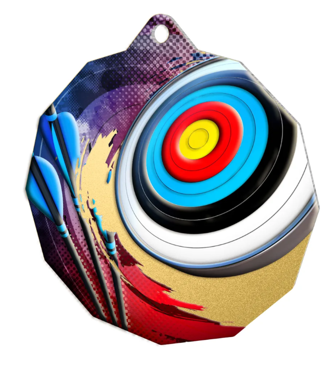 Medaile vyrobená z nerezové oceli, s UV potiskem a 2D efektem.