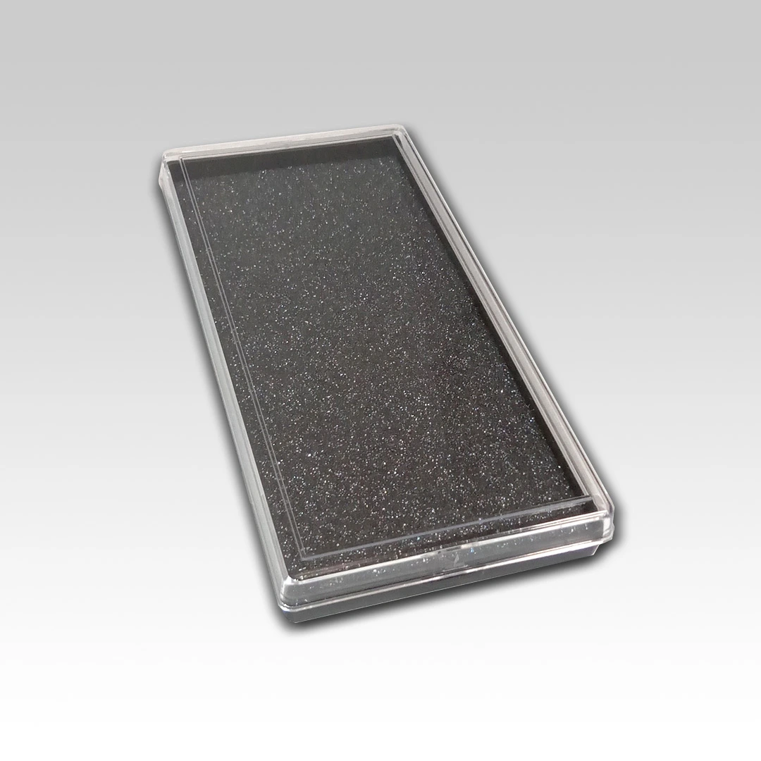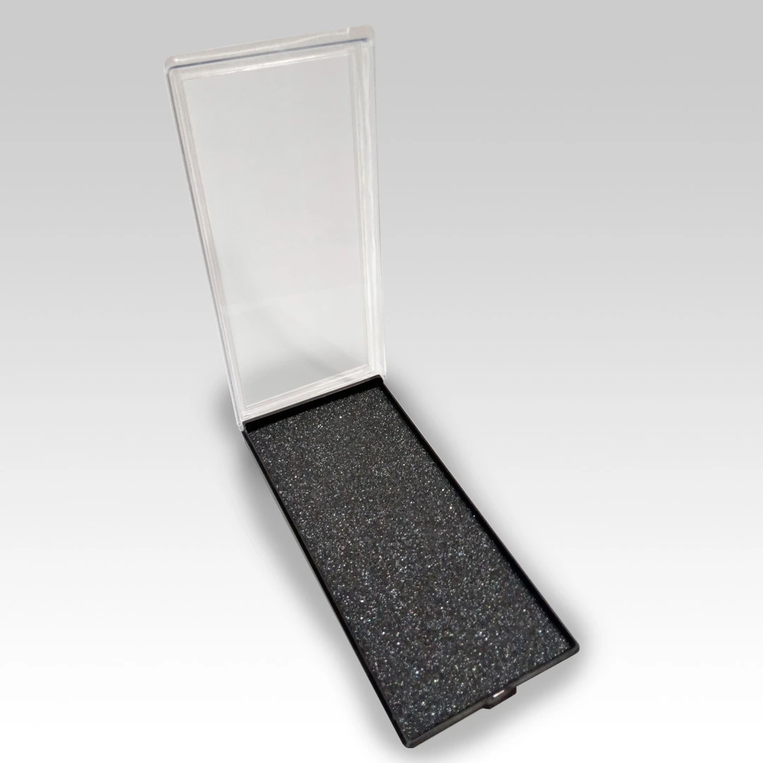 Velikost krabičky je 15,5 x 8 cm. Vnitřní prostor pro vložení řádu nebo medaile včetně stuhy má rozměry 15 x 7,4 cm. Vnitřek krabičky je vybaven měkký molitanem v černé barvě. Horní víko krabičky je celoprůhledné.
