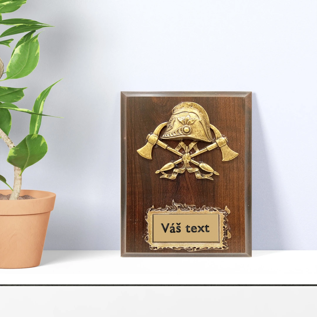 Dárek který udělá radost profesionálnímu i dobrovolnému hasiči. To je dřevěná plaketa s motivem helmy a překřížených seker o velikosti 17,5x12,5cm z naší výroby. Plaketa je absolutní novinka na našem trhu - za jejím vývojem stojí náš profesionální český tým specialistů na trofeje.