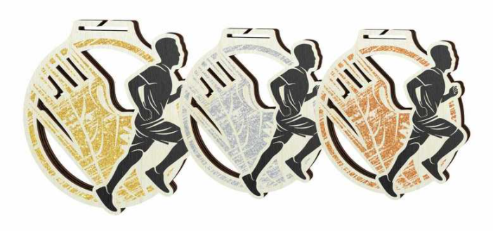 Dřevěná medaile s potiskem v barvě zlato/stříbro/bronz.V ceně medaile je zahrnut potisk zasní strany s vlastním textem