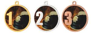 Kombinace dřeva a akrylu. Vnitřní část průhledná.Tloušťka 0.6cm. Průměr 7cm.Texty uvedené na medailích jsou ilustrační.Možnost vložení textu/loga/názvu přímo do medaile součástí ceny.