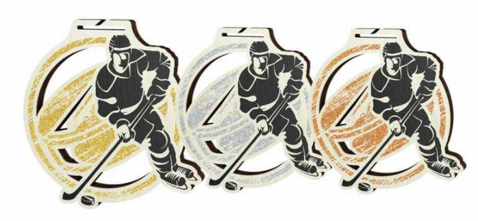 Dřevěná medaile s potiskem v barvě zlato/stříbro/bronz.