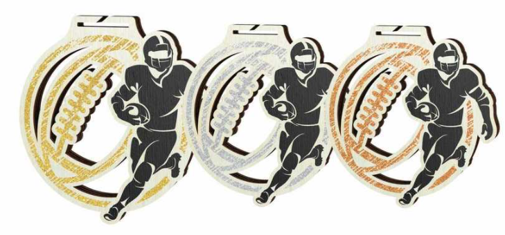 Dřevěná medaile s potiskem v barvě zlato/stříbro/bronz.