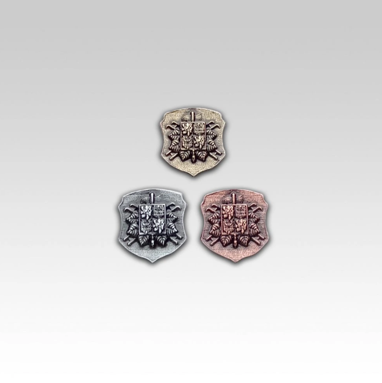 Odznaky jsou dostupné v průměrech 15 mm nebo 20 mm.