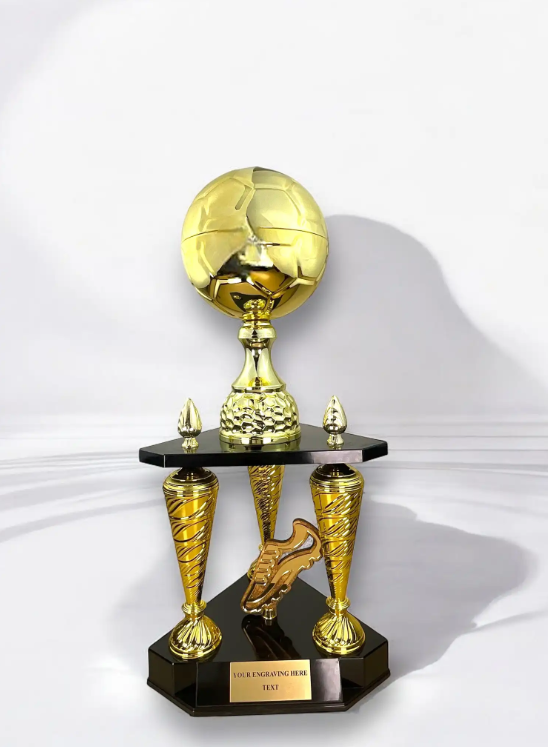 Patrový fotbalový pohár o výšce 62 cm. Cena trofeje nezahrnuje štítek, který si můžete objednat samostatně dle vašich přání.