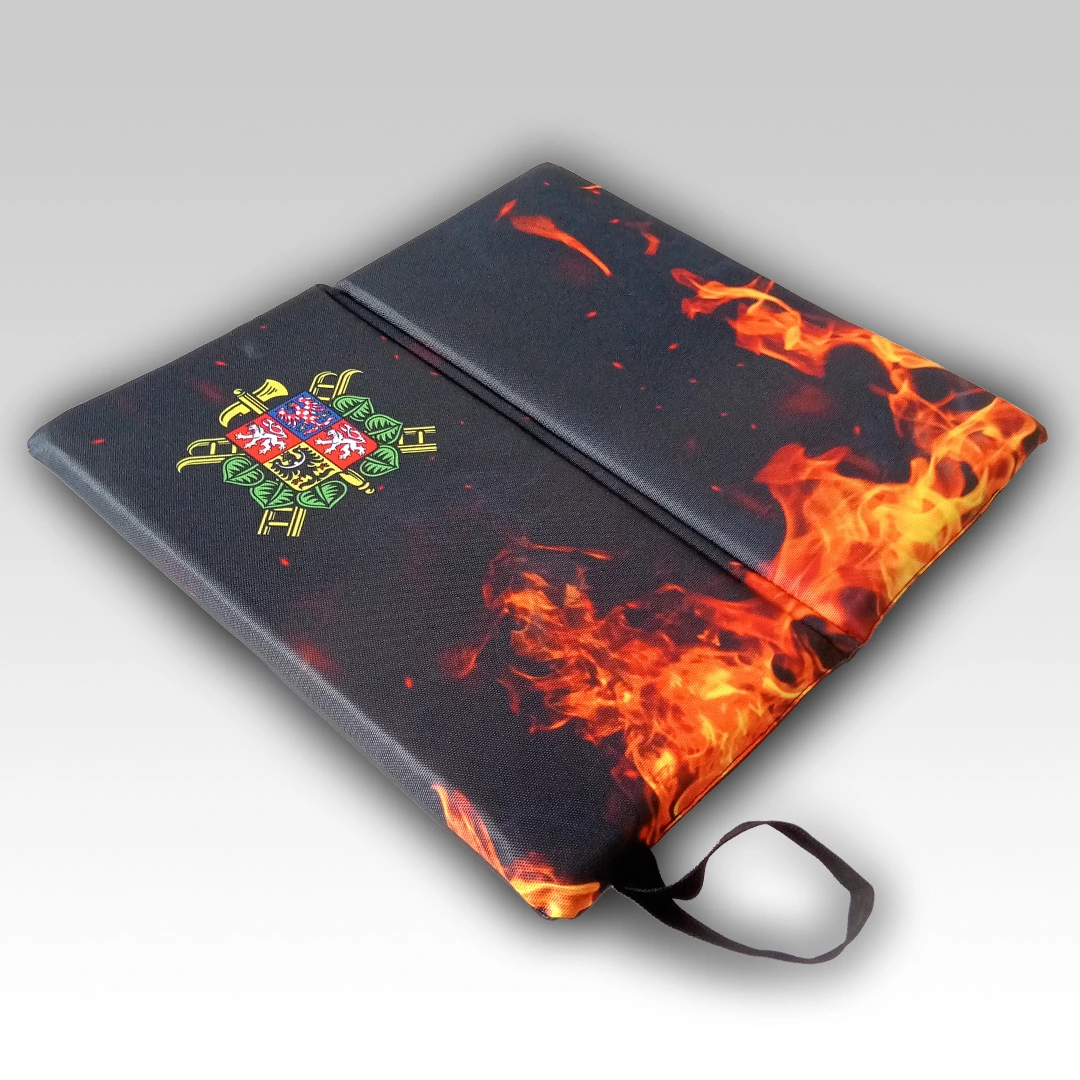 Pro venkovní akce, posezení na lavičce nebo na chladnou židli v pracovně, všude tam se hodí podsedák. Dárek pro hasiče, který jistě udělá radost a navíc je velmi praktický. Spodní vrstva je vyrobena z vodě nepropustného materiálu (umělá ekokůže) - můžete jej bez obav položit na vlhkou lavičku a v klidu se posadit. Vrchní vrstva podsedáku je z pevného voděodolného plátna s potiskem hasičského motivu znaku SDH na podkladu s plameny.