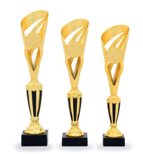 3 různé velikosti    Barva: zlatá a černá    Podstavec: černý    Prostor pro emblém