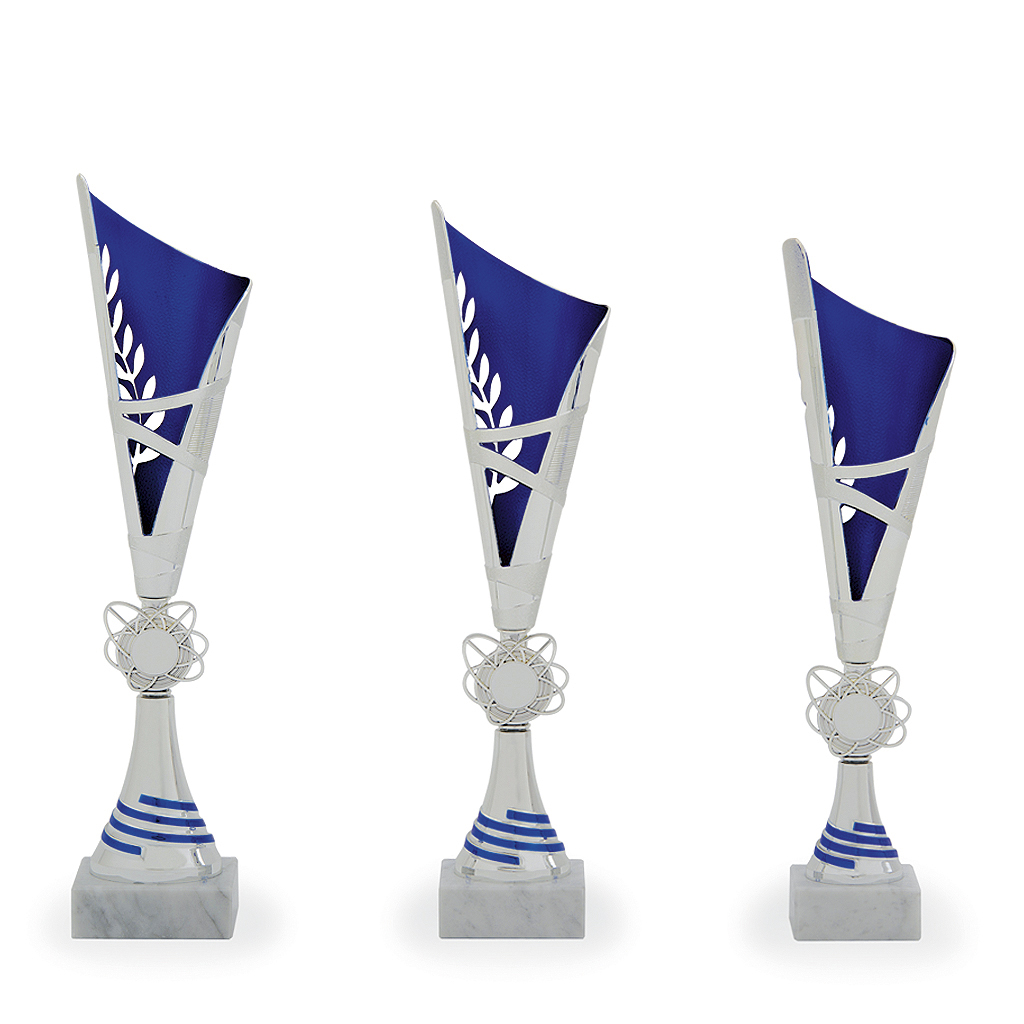 3 různé velikosti   barva. stříbrná s modrou   prostor pro emblém   podstavec bílý