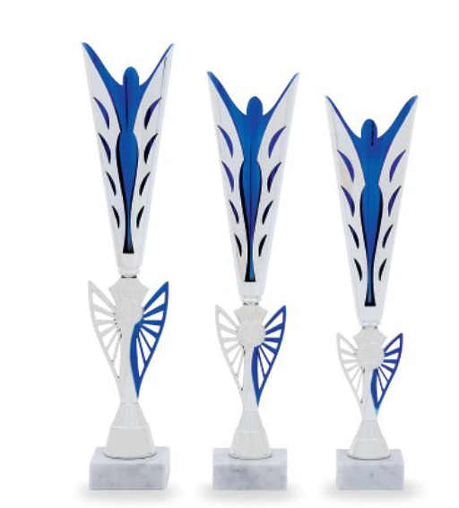 3 různé velikosti    Barva: stříbrná a modrá    Podstavec: bílý    Prostor pro emblém
