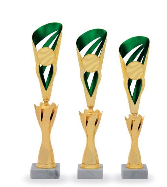 3 různé velikosti    Barva: zlatá a zelená    Podstavec bílý    Prostor pro emblém