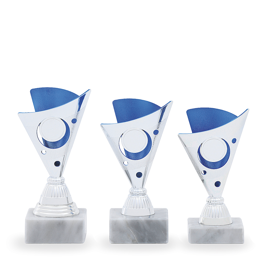 3 různé velikosti    barva: stříbrná a modrá    podstavec bílý  Prostor pro emblém