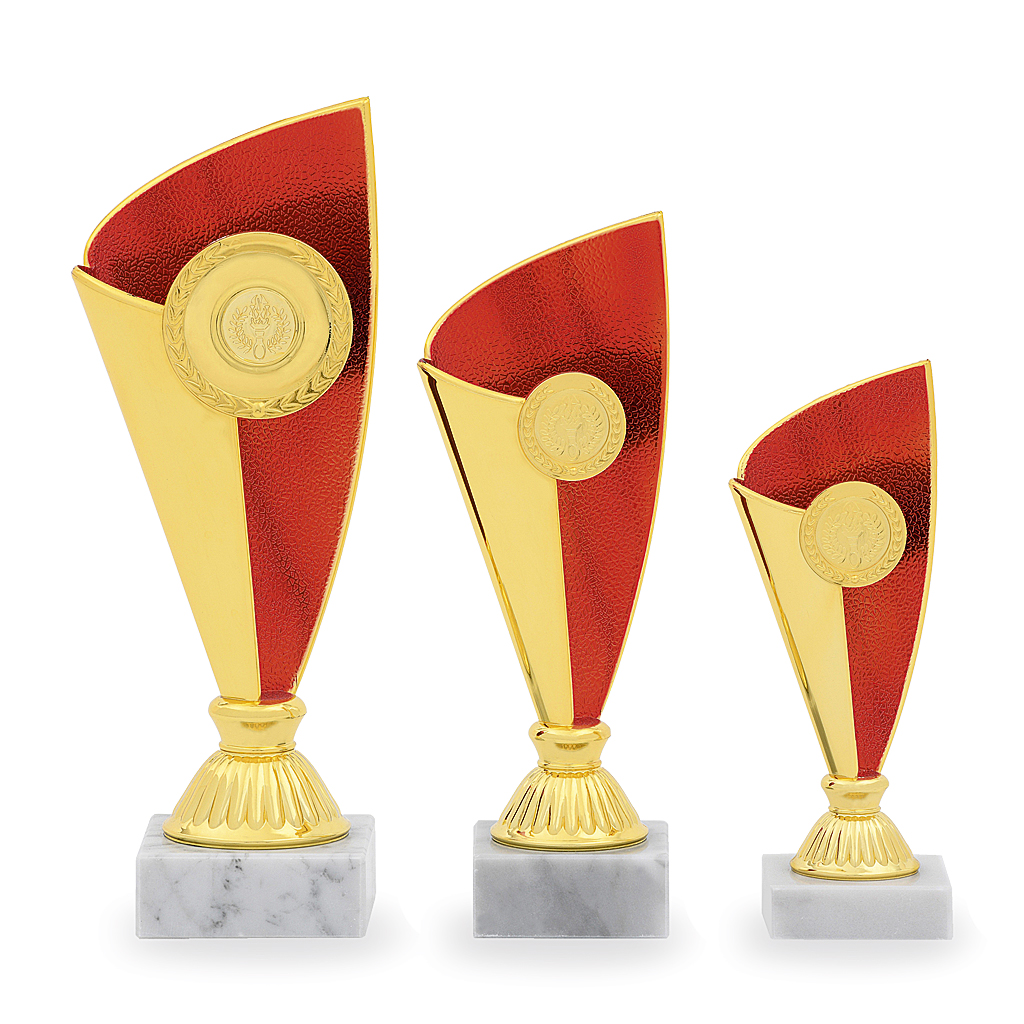 3 různé velikosti    barva: zlatá a červená    podstavec: bílý    prostor pro emblém