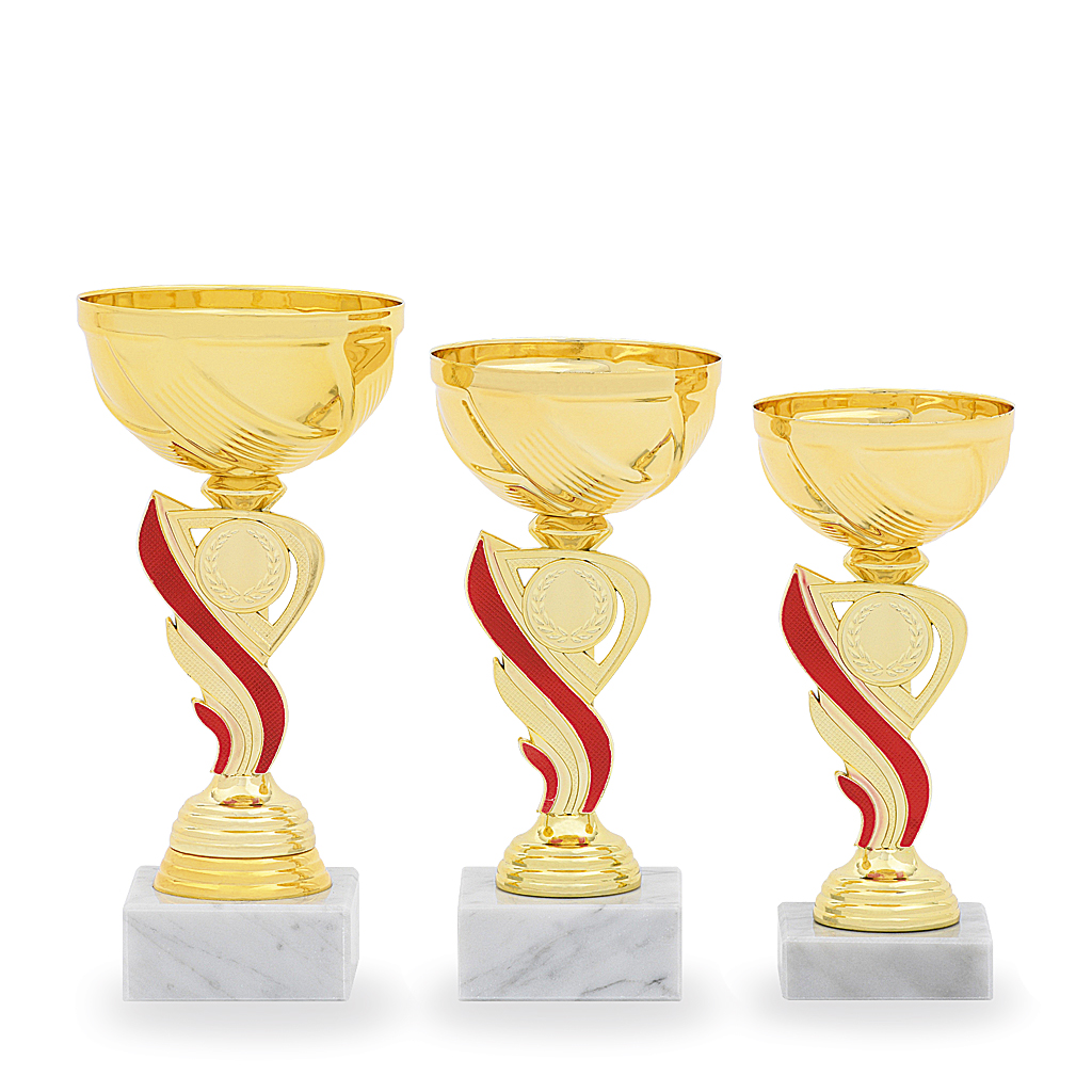 3 různé velikosti   barva: zlatá a červená    podstavec bílý    prostor pro emblém    možnost umístění poklice