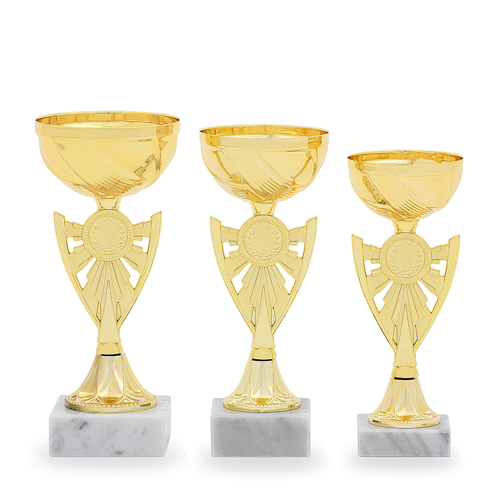 3 různé velikosti  barva: zlatá  podstavec: bílý  prostor pro emblém  možnost umístění poklice