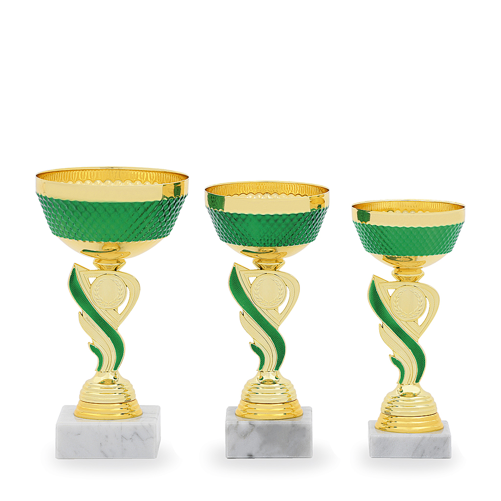 3 různé velikosti    barva: zlatá a zelená    podstavec: bílý    prostor pro emblém    možnost umístění poklice