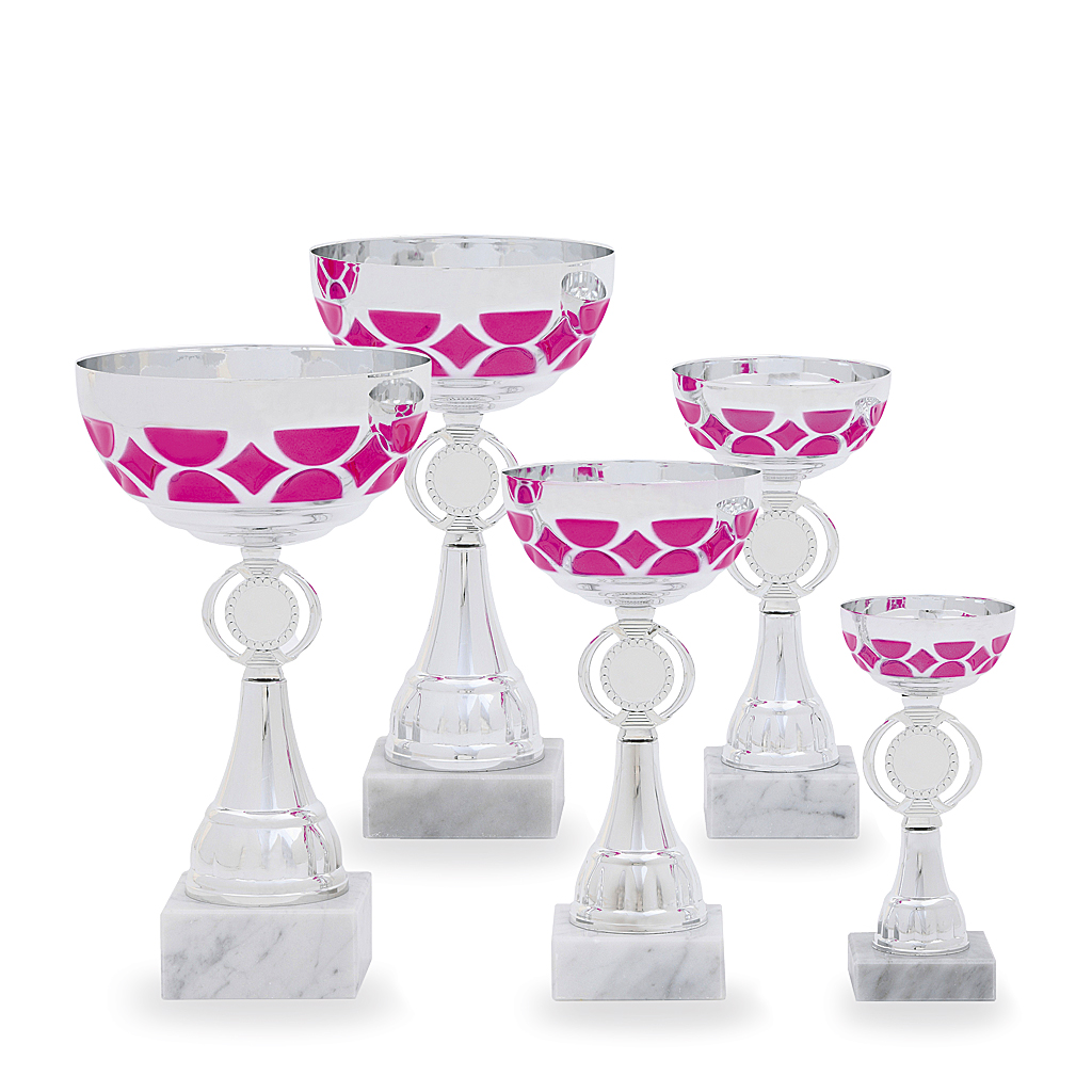 5 různých velikosti    barva: stříbrná a růžová    podstavec: bílý    prostor pro emblém    možnost umístění poklice