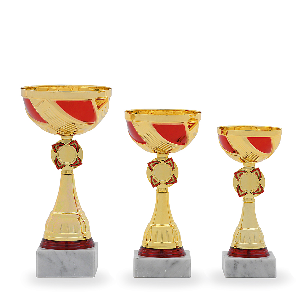 3 různé velikosti    barva: zlatá a červená     podstavec: bílý    prostor pro emblém    možnost umístění poklice