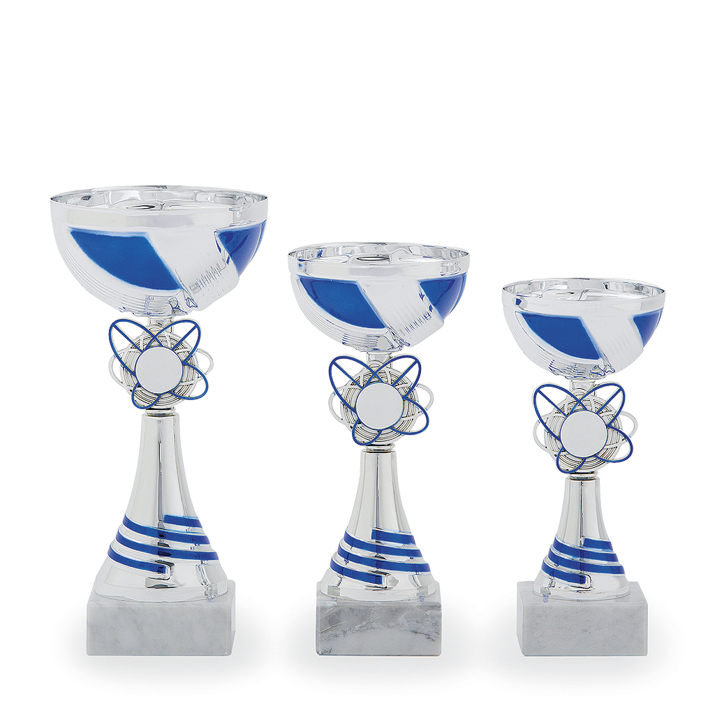 3 různé velikosti   barva: stříbrná s modrou   prostor pro emblém   podstavec: bílý