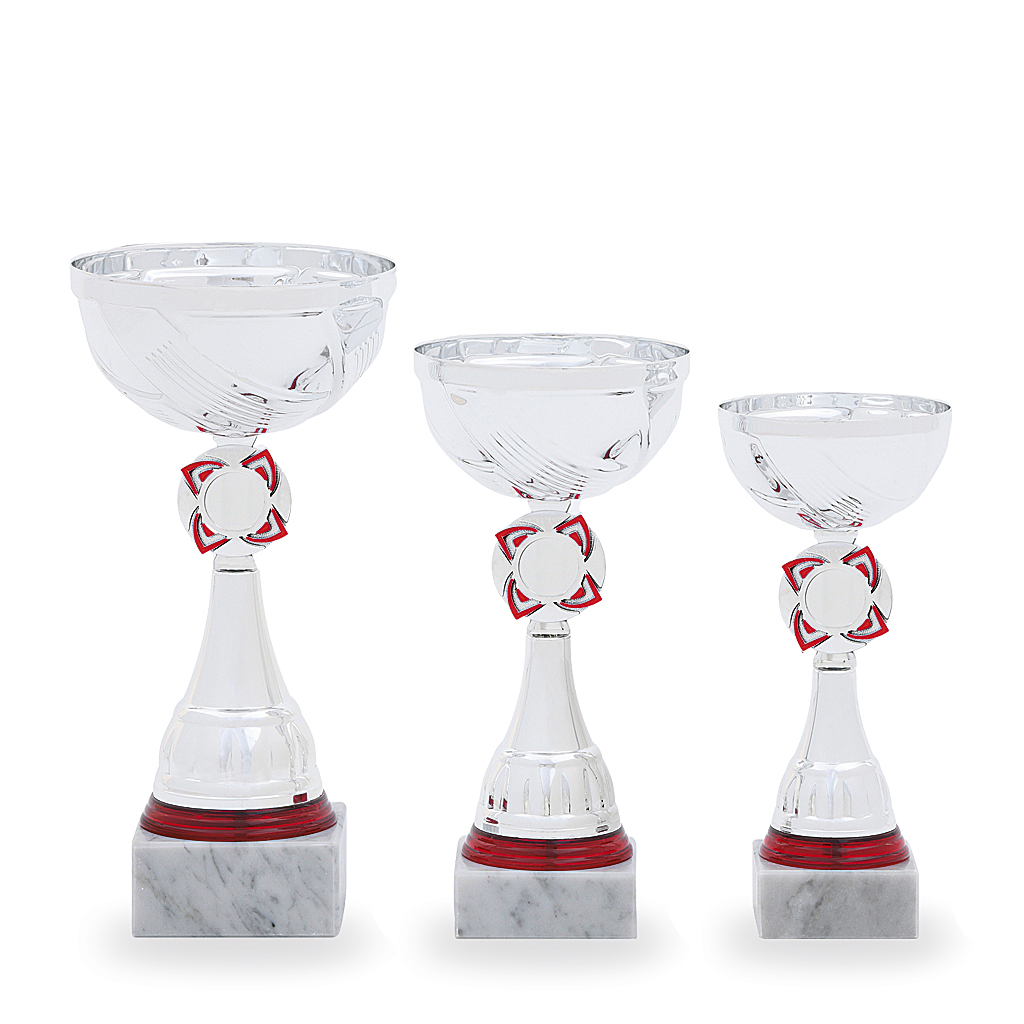3 různé velikosti    barva: stříbrná a červená    podstavec: bílý    prostor pro emblém    možnost umístění poklice